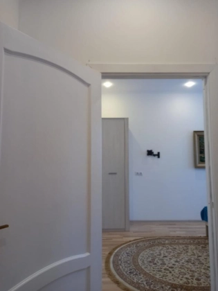 Ремонт выполнен из натуральных и экологически чистых материалов. Деревянные межкомнатные двери и паркет.