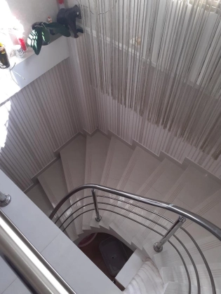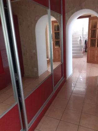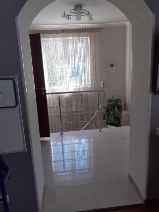 В основном доме на 1-м этаже располагается прихожая со встроенными шкафами, раздельный санузел и спальня. На второй этаж ведет очень удобная винтовая мраморная лестница. Здесь располагается гостиная и три раздельные комнаты. Во всем доме хороший качественный ремонт. Окна ПВХ