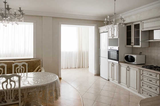 Просторная кухня- столовая 23 м2 , с лоджией 7.5 м2 заслуживают вашего отдельного внимания. Здесь хватит места для каждого члена семьи, а также для ваших гостей.