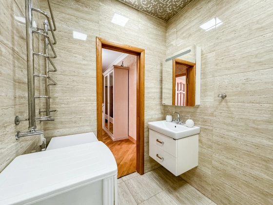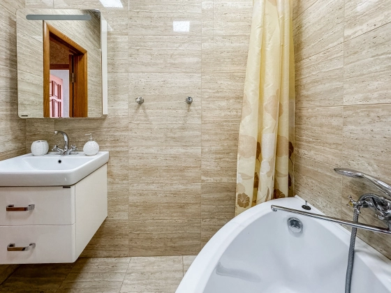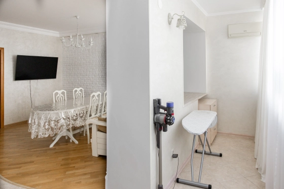 В квартире выполнен современный ремонт. Всё поменяли, включая окна, электрику, сантехнику, трубы и радиаторы.