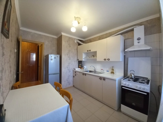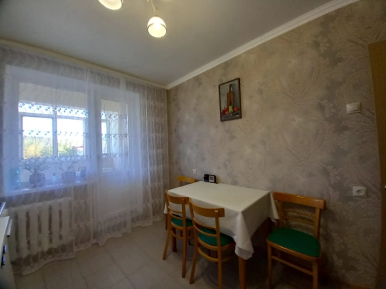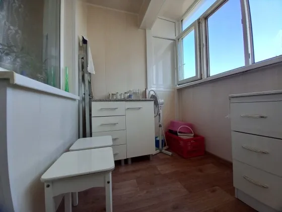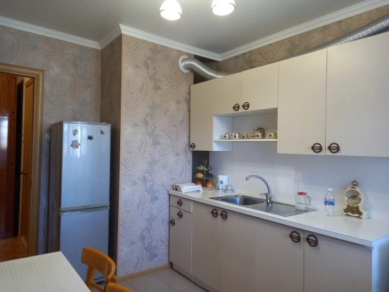 В прихожей и на кухне, натяжные потолки, обои, качественная плитка на полу. Окна пластиковые, в т.ч. и на лоджии. Из окон открывается красивейший вид на горы.